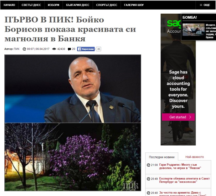 Що за новина е: Бойко Борисов показа красивата си магнолия в Банкя???