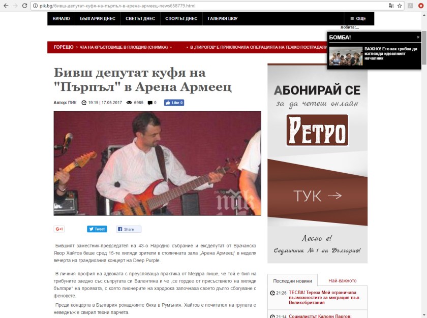 Кой се интересува от “новината”, че някакъв бивш депутат писал във фейсбук профила си, че бил на концерта на Deep Purple в София? На кого му пука, че въпросният бивш депутат бил почитател на Deep Purple и неведнъж бил свирил техни парчета???