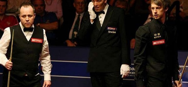 Джон Хигинс играе срещу Джъд Тръмп в най-интересния мач от четвъртфиналите на Световното първенство по снукър в Шефийлд. Четирикратният световен шампион Хигинс и Джъд Тръмп