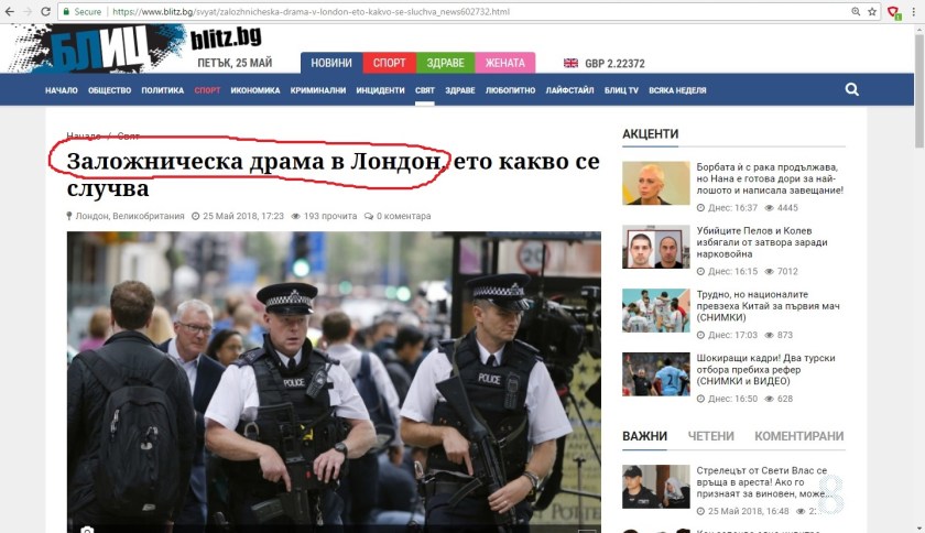 И ако не ви се иска да приемете, че може да има толкова неграмотни хора, които виждат Лондон дори там, където не го пише, то остава другата, по неприятна възможност – “преводът” да е на правен нарочно така, за да хване окото и да ви накара да “кликнете”. Това е типично малнипулативно заглавие, което има за цел да ви заблуди, за да влезете в материала и да ви “отстрелят” като бройка за пред рекламодателите.