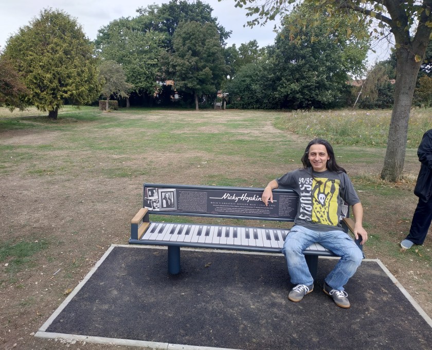 Въпреки надеждите нито един от членовете на Rolling Stones (Хопкинс е записвал 15 години с тях) не присъства на церемонията. По-рано днес Кийт Ричардс отбеляза събитие в своя туитър акаунт с: “Nicky Hopkins Memorial “Piano” Park Bench unveiling is Sat, Sept 8 at noon in Perivale Park, Ealing. Donations for the Nicky Hopkins Scholarship at the Royal Academy of Music (where Nicky studied) can be made here: https://community.ram.ac.uk/mygift“. “To my very best friend, Nicky” – Keith”.