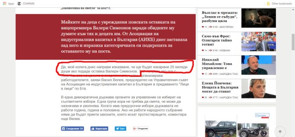 Вчера от Асоциацията на индустриалния капитал в България (АИКБ) заплашиха, че ще изкарат 20 000 човека на контрапротест, ако вицето Симеонов падне от поста си.