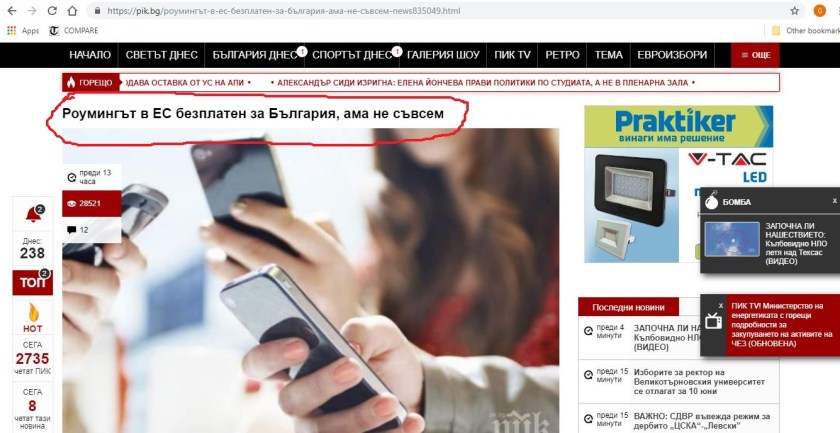 Цитат: “Зад завесата” обаче остана скрита информацията, че ако човек звъни от България в ЕС, това незнайно защо не се смята за роуминг, а за международно обаждане, което се таксува според тарифата на съответния оператор. За това няма никаква логика, тъй като България също е в ЕС, но явно за пореден път доказва, че Европа е на две скорости.”