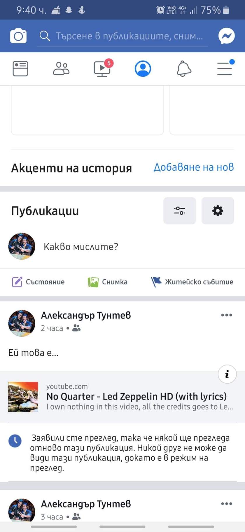 Ей на тоя момък са му блокирали публикация във фръцбук – прегрешението му е че е пуснал линк към “No Quarter” на Led Zeppelin, с обяснението: “Тази публикация нарушава нашите Стандарти на общността по отношение на голотата или сексуалната дейност”.
