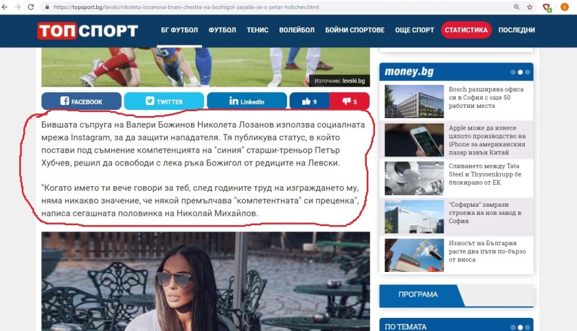 Вчера Николета Лозанова, бивша съпруга на Валери Божинов, започна да дава оценки на компетентността на треньора на сините Петър Хубчев.