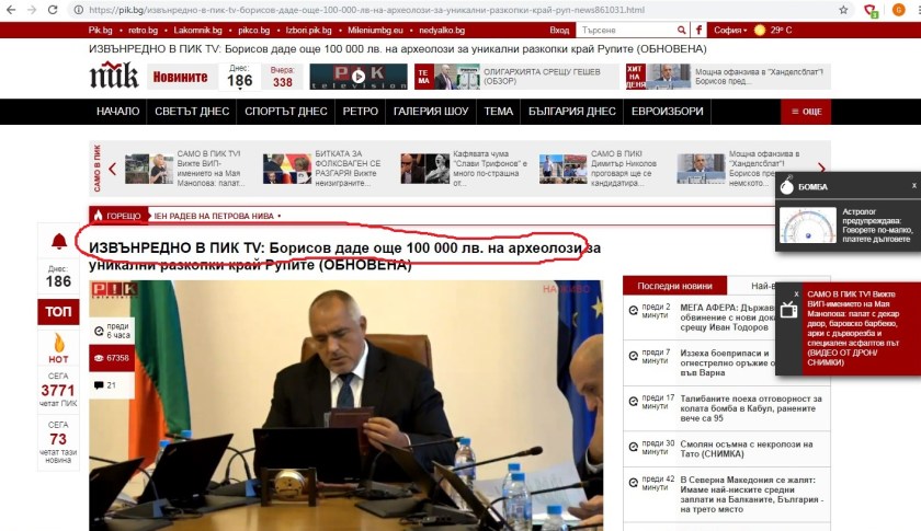 Само една медия (тук думата медия би трябвало да е в кавички) твърди: “Борисов даде още 100 000 лв. на археолози за уникални разкопки край Рупите”. Откъде е извадил Борисов 100 000 лева за да ги даде лично, не се обяснява. Може да са от спестовните му влогове, може да е спечелил на тото.