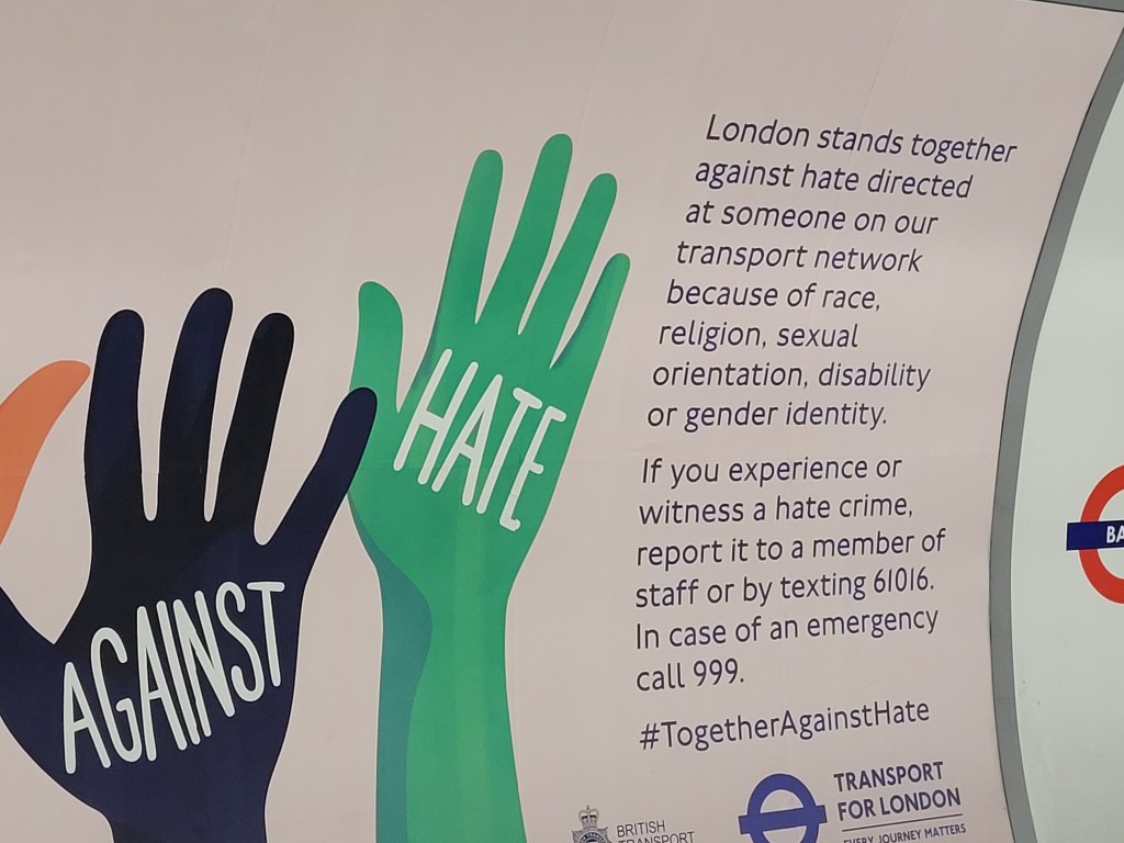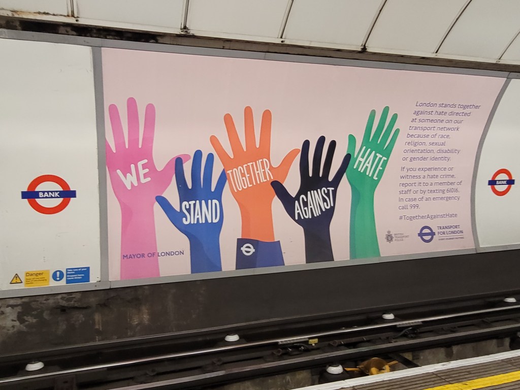 Шефовете на метрото напляскали едни рекламни пана по станциите. Темата – да се спре омразата на расов, религиозен, сексуален, инвалиден или джендър признак.