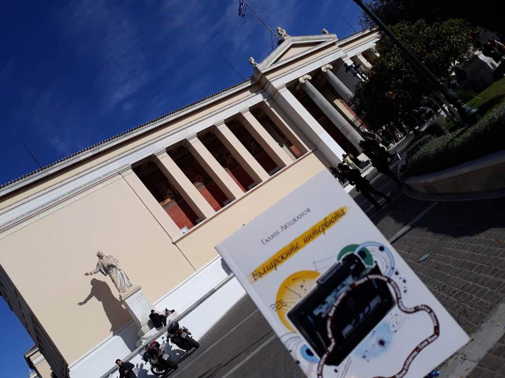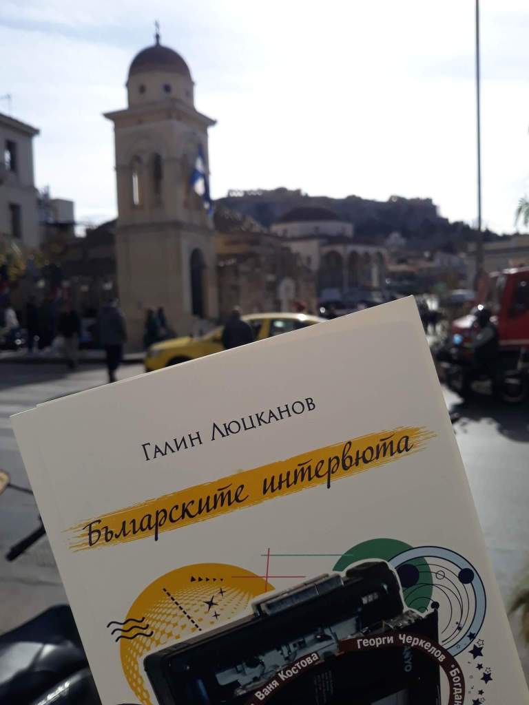 Благодарение на Милена Панайотова книгата ми “Българските интервюта” вече е и в Гърция – на Акропола и пред Университета в Атина.