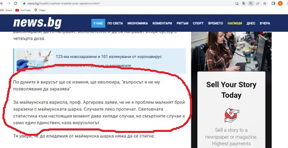 “По думите ѝ вирусът ще се изменя, ще еволюира, “въпросът е не му позволяваме да заразява”. За маймунската вариола, проф. Аргирова заяви, че не е проблем малкият брой заразени с маймунската шарка. Случаите леко протичат. Световната статистика към настоящия момент дава хиляди случаи, но смъртните случаи е само един единствен, каза вирусологът.”