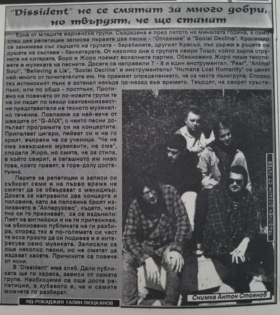Тя е част от моето представяне на група Dissident, в която тогава Краси свиреше, в рубриката ми BG-ROCK във вестник НД-ЧЕРНОМОРИЕ.