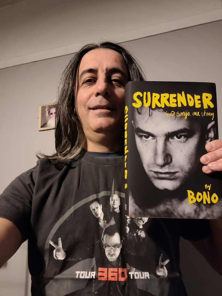 Когато преполових “Surrender”, осъзнах че това всъщност са две книги, които Боно е обединил в една. Първата е музикалната история на U2, историята на четири ирландски момчета, които и до днес за заедно, нещо което е невероятно постижение в месомелачката начерена музикална индустрия. Втората е посветена на живота на Боно като активист в най-различни области на живота и…влиянието на религията върху ирландеца.