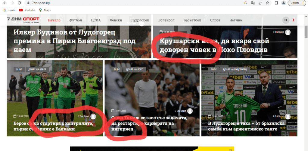 Три правописни грешки в шест водещи заглавия изстреляха https://7dnisport.bg/ на първа позиция в класацията ми за неграмотни медии.