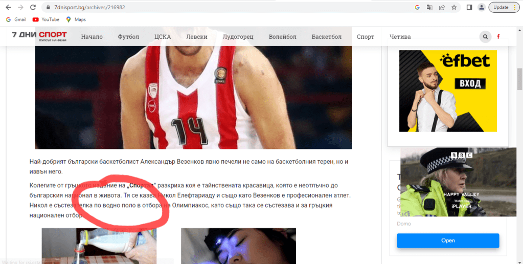 Върхът обаче е написаното в материала за баскетболиста Александър Везенков. Ако не знаете, от писанието ще научите, че съществува спорт “водно поло”. Вероятно състезателите за яхнали коне в басейна и гонят със стикове топката под вода…