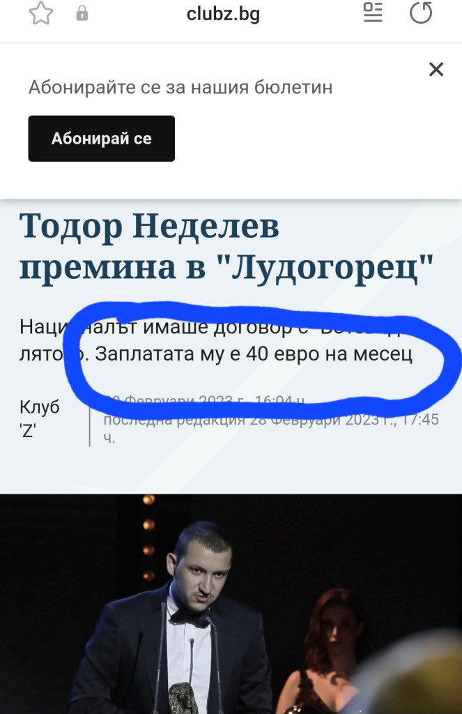 Ако не ми вярвате, вижте скрийншота, според който Тодор Неделев играе в “Лудогорец” срещу 80 евро на месец!