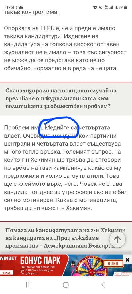 Илияна Маринкова, която и да е тя, е написала два пъти “медийте” в едно интерювю във www.frognews.bg днес. Не един, а два пъти!
