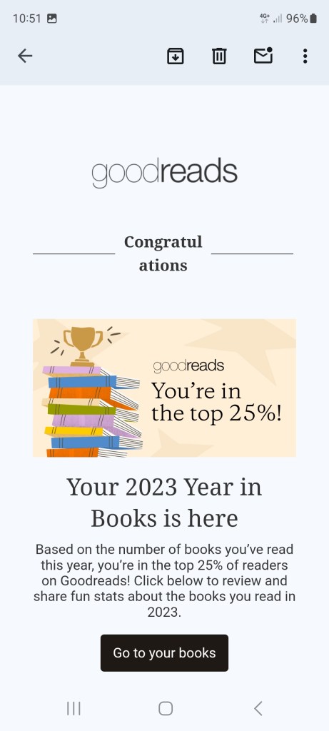 Ако със 73 прочетени книги тази година (една на всеки 5 дни) съм в TOP25 на http://www.goodreads.com, колко ли трябва да прочета, за да съм в TOP10???