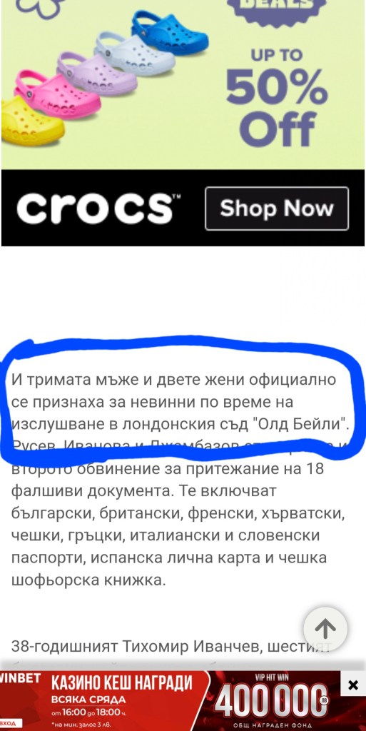 Вчера “журналистите” от www.frognews.bg пак сътвориха изключителна тъпня. Според тях: “И тримата мъже и двете жени официално СЕ ПРИЗНАХА ЗА НЕВИННИ по време на изслушване в лондонския съд “Олд Бейли”.