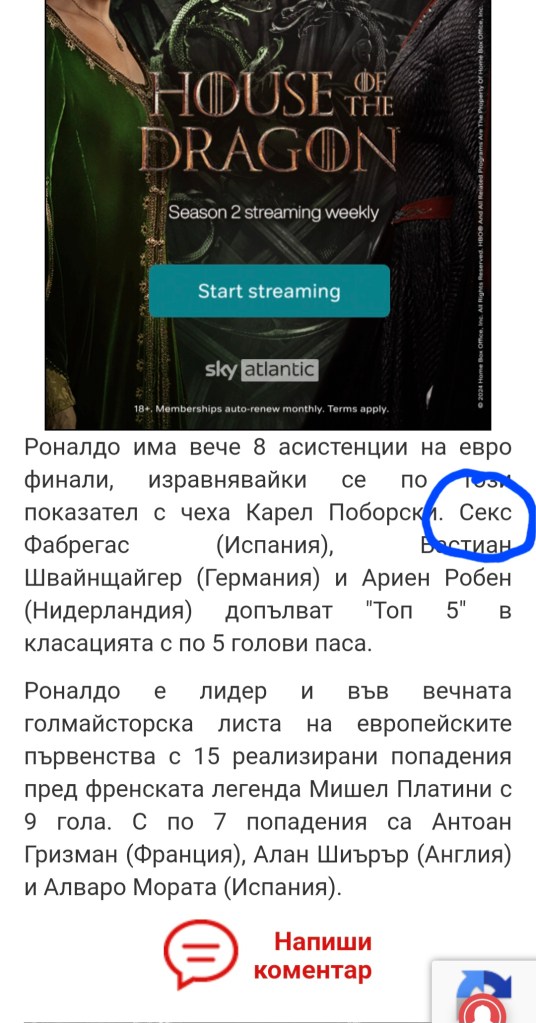 Подобни неща са допустими на лични сайтове или страници, но да си с претенции за спортен сайт и да пишеш Секс Фабрегас…гениално, Пешев!