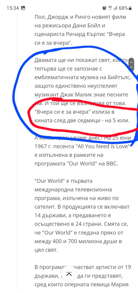 Умопомрачителното в това писание е, че според анонимният автор, на 5-и юли по екраните тръгвал новия филма на Дани Бойл “Вчера си е за вчера”…