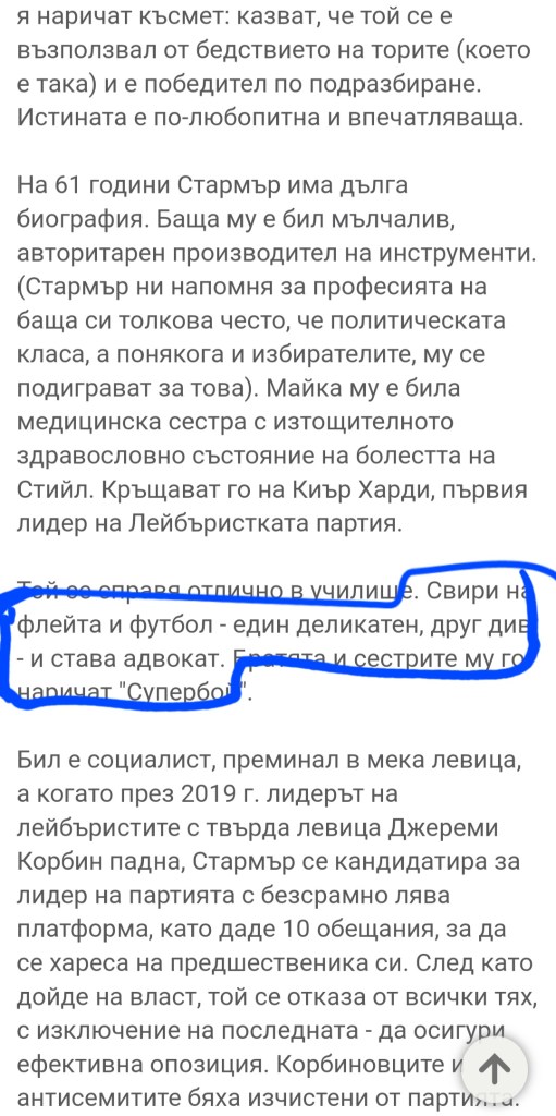 Простотията на фрогнюз наистина няма граници: “Той (Киър Стармър) се справя отлично в училище. Свири на флейта и футбол – един деликатен, друг див – и става адвокат. “