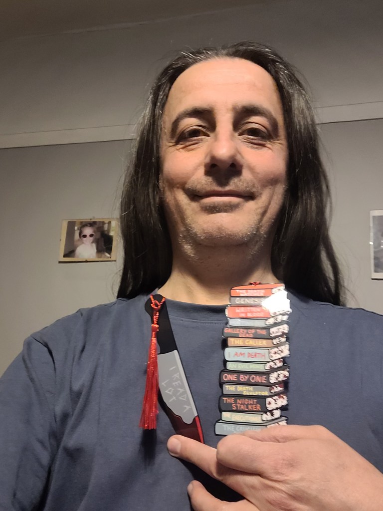 Моят е с книгите на Крис една върху друга, а ножът е за Бойко Димитров , който има книга от Крис надписана така: