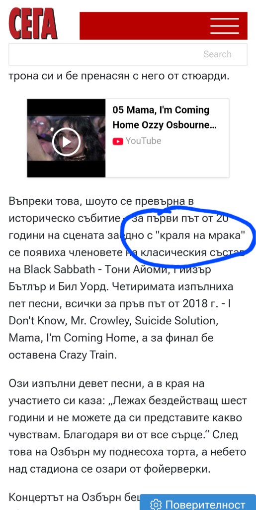 Попаднах на една потресаваща дописка в сега.бг, в която Ози е наречен “краля на мрака”.