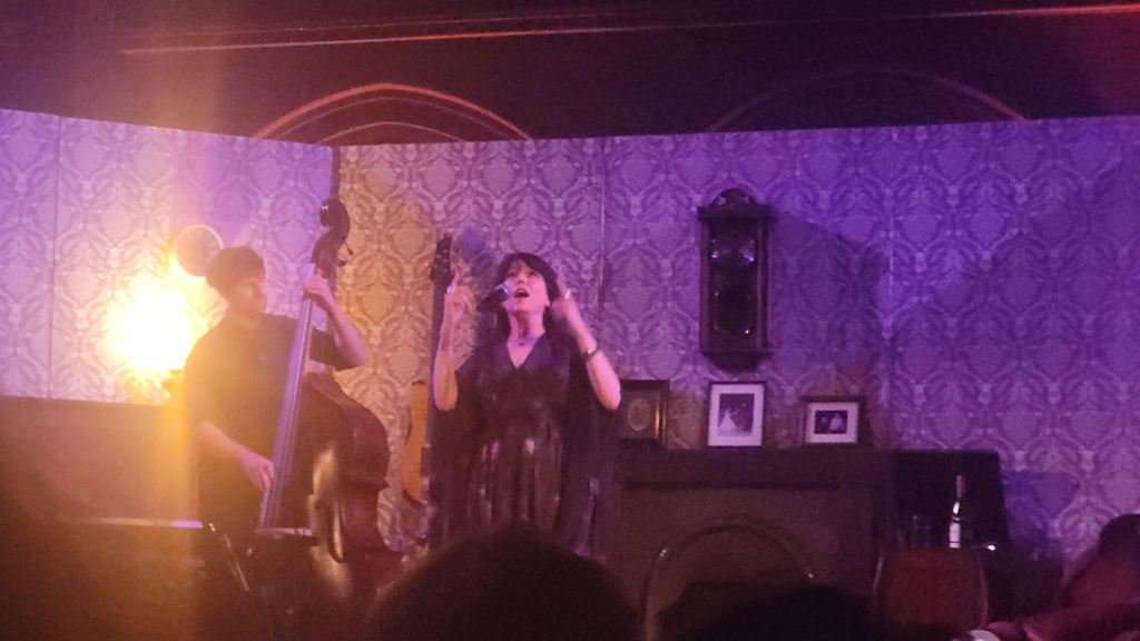 Сцената в Union Chapel наистина беше като хол – с диван, фотьойл, пиано с лампа върху него, снимки на Имелда като малка заедно с родителите й, китари по стените, масичка с бутилка червено вино и три чаши…все едно наистина бяхме в хола й!